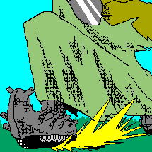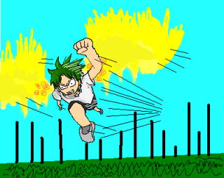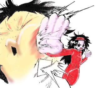 鈴子・ジェラードがあみだした新技で、厚底サンダルに詰めたビーズを爆弾に変え、その爆発を利用してぶっ飛ぶ技 |
