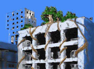 天界名所その10 3次選考最終戦が行われた競技場 外観はカエルが伏した形をしている |